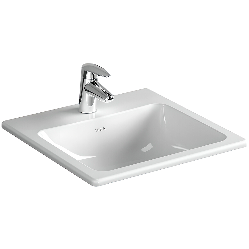 Раковина, Vitra, S20, ширина, мм-450, глубина, мм-450, высота, мм-170, тип установки-встраиваемый, отверстия для смесителя-1, с переливом, материал-керамика, цвет-белый