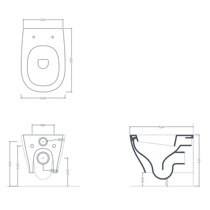 —Artceram TEN Унитаз подвесной, 52х36см, безободковый, с крепежом, цвет: черный матовый