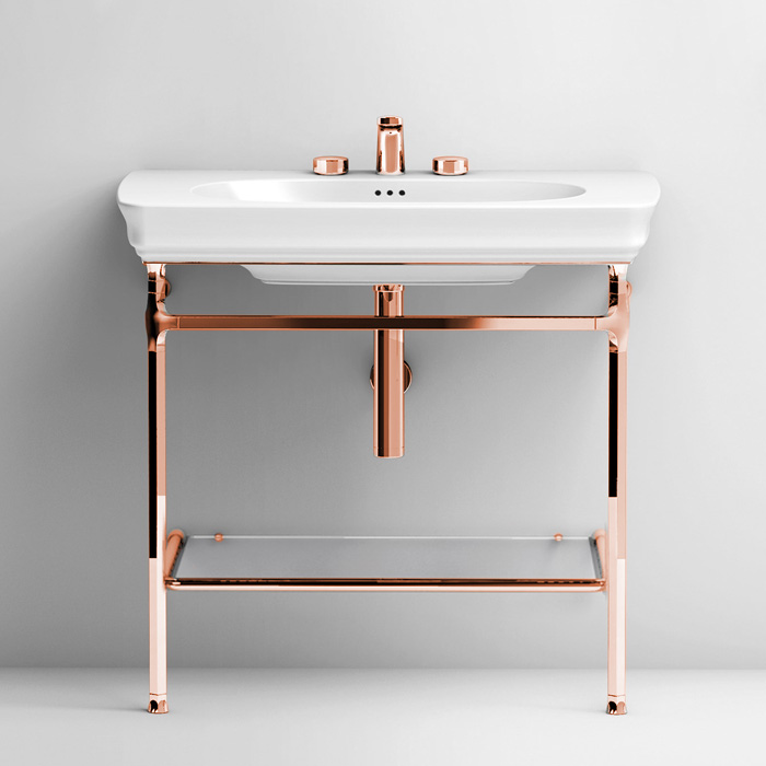 Мебель для ванных комнат Kaldewei VITAGE milldue edition Ritz Шкаф-пенал 960х320х1585 мм, напольный, 2 двери, 5 полок, цоколь сталь, рама глянц лак Castoro, фасад стекло Alligator gold 3160.74.111.98