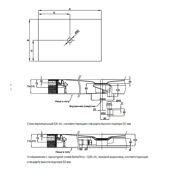 Душевая зона BETTE Германия BETTE Floor Душевой поддон 80х80х3.5 см, квадратный, D90 мм, цвет белый B50-3141