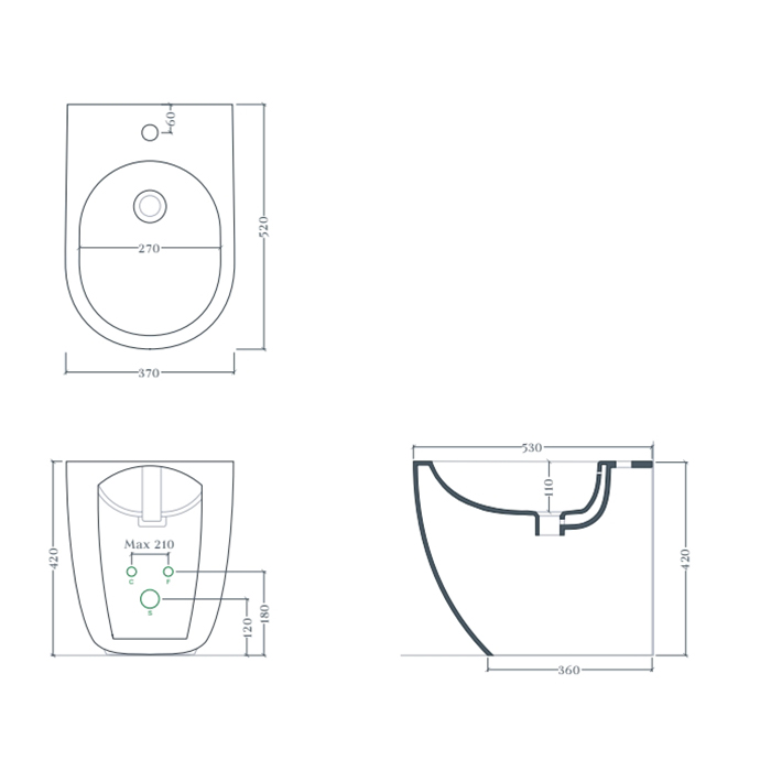 Биде Artceram ARTCERAM FILE 2.0 Биде напольное 37х52 см, 1 отверстие, цвет черный матовый/покрытие Saniglaze FLB004 17 00