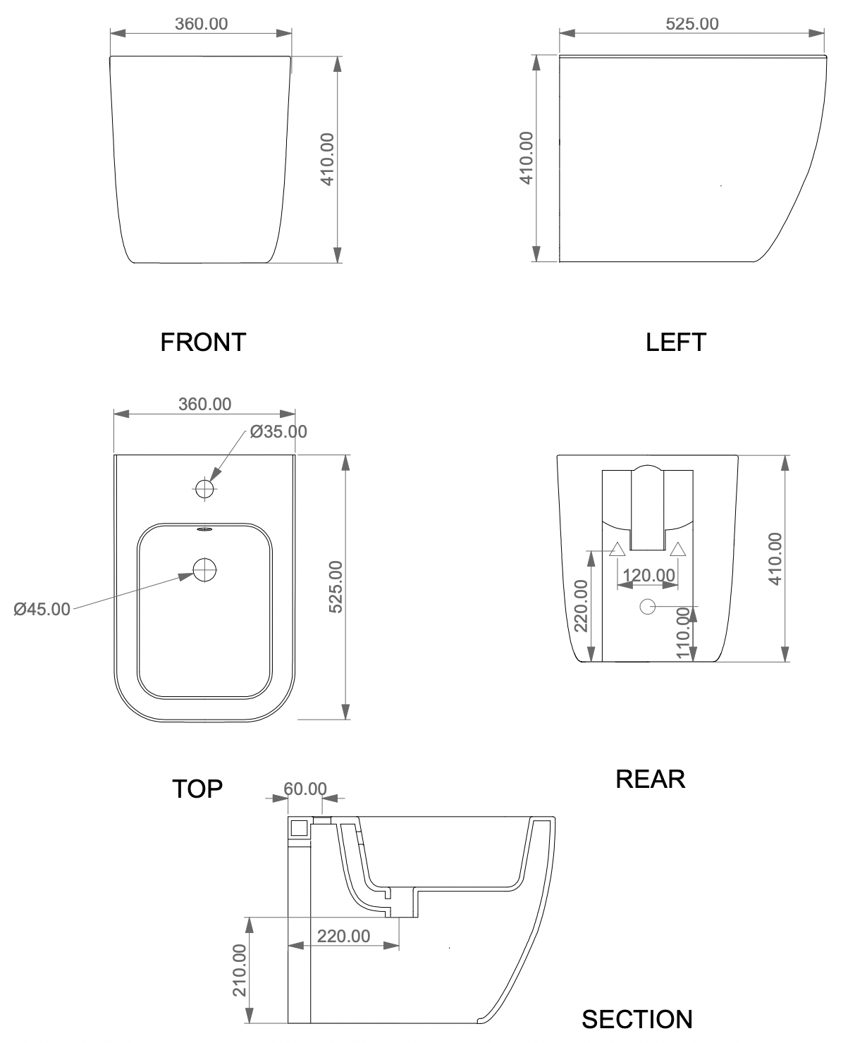 Биде приставное GSG Ceramic Design Brio BRBI01000, белый глянцевый