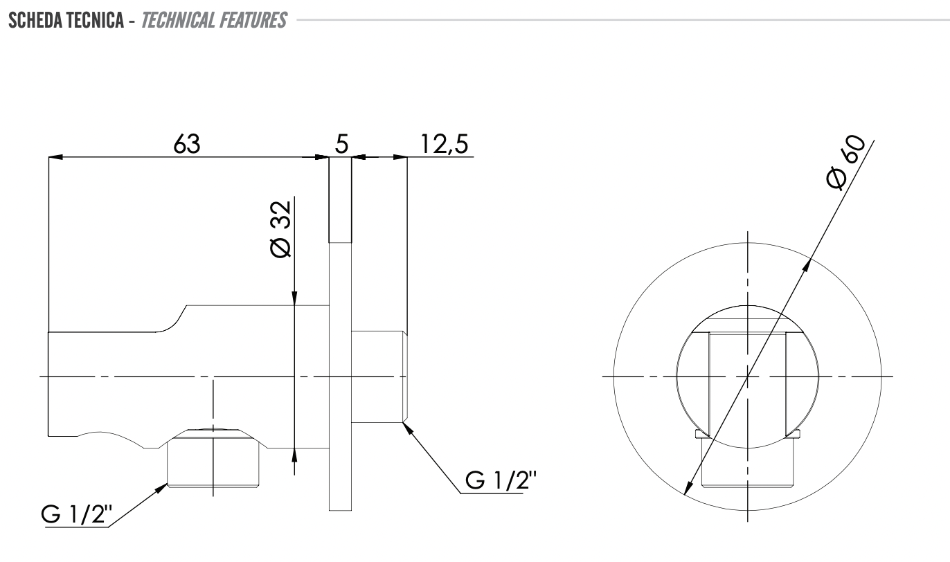 Смесители Remer Rubinetterie Италия Держатель ручного душа с подключением шланга Remer 337MXV, сталь 337MXV