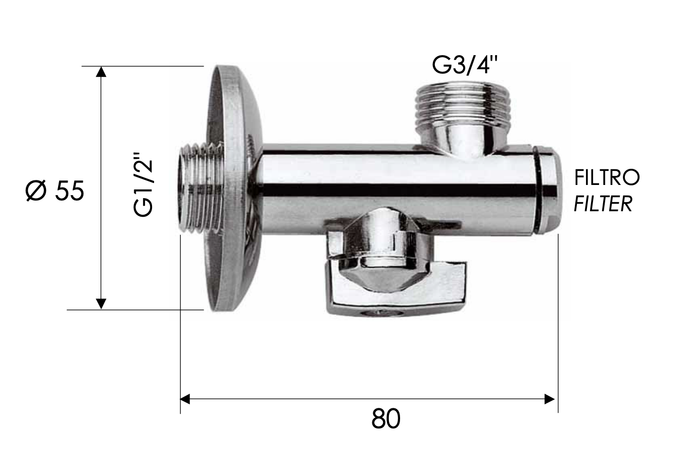 Запорный вентиль с фильтром 1/2*3/4 Remer 1231234
