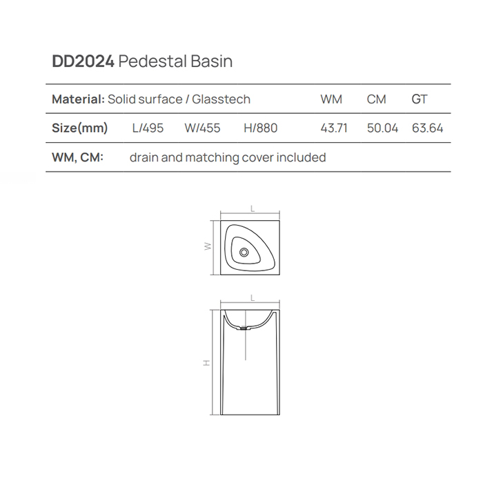Раковины DEA DEA DESIGN Раковина напольная d495хh900 мм, цвет белый матовый DD2011 495 18