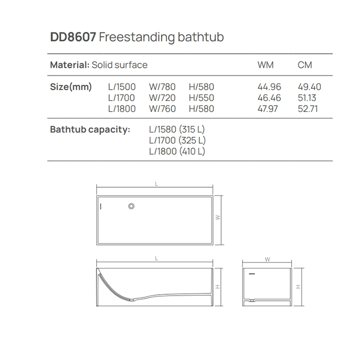 Ванны DEA DEA DESIGN Modern Ванна отдельностоящая 180x76xh58 см, материал: Solid Surface искуственный камень, цвет: White №18 DD8607 1800 18