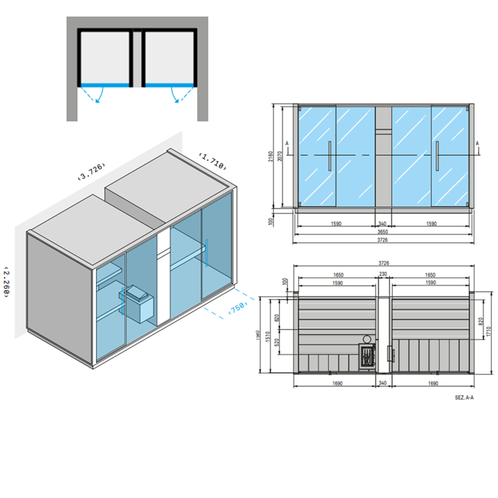 Effegibi Logica SH Сауна & Хаммам система, угловая SX, 373x171xh226см, отделка: Soft Sand Effegibi Logica SH Сауна & Хаммам система, угловая SX, 373x171xh226см, отделка: Soft Sand