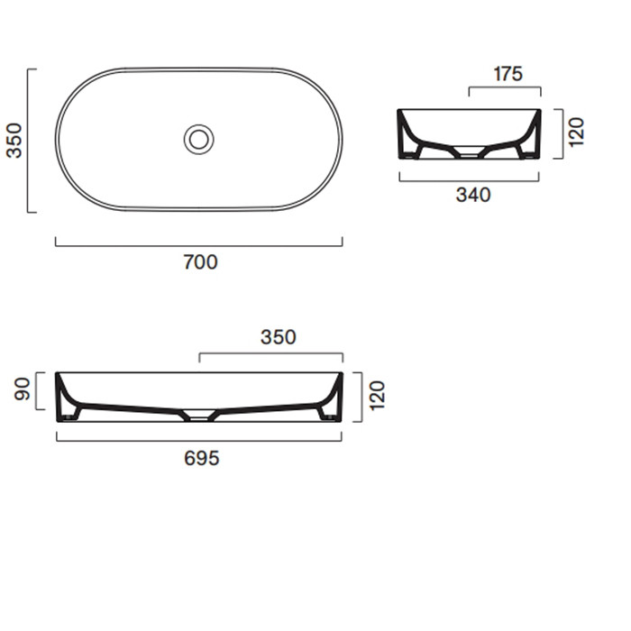 Раковины DEA DEA DESIGN Washbasins Раковина настольная 68x36xh9,5 см, материал: Solid Surface искуственный камень, цвет: White №18 DD9001 680 18