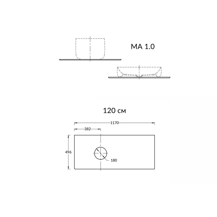 Раковины KERAMA MARAZZI Kerama Marazzi MAGICA Столешница из керамогранита для накладных раковин Риккарди 120 см, бежевый матовый (без отв.) MA.1.0.SG540620R\120