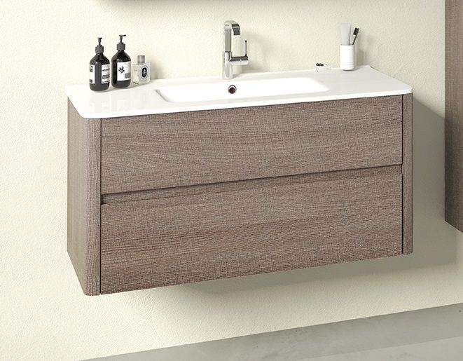 —IBX ASUN, тумба под раковину 100 см, 2 ящика без ручек, цвет белый глянцевый лак