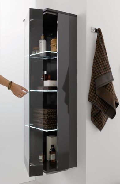 Puris Puris B-Classy, средний шкаф 40 см левый (1 стеклянная дверь, 3 полки с посветкой), цвет лак карбон MNA814A9GL(789/189)