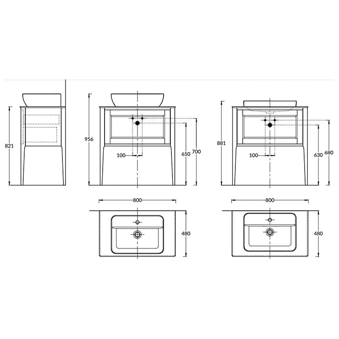 Мебель для ванных комнат FALPER FALPER 7.0 Композиция из тумбы R0508000000BQ 800х450х500 и раковины CERAMILUX D7H08000000OP с 1 отверстием под смеситель V2B