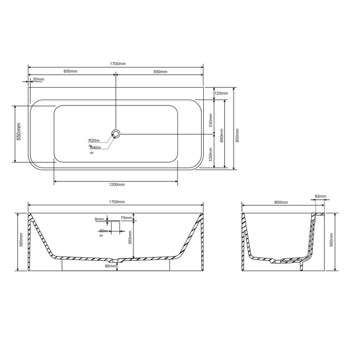 Ванны DEA DEA DESIGN Edge Ванна 1700х780хh560 мм отдельностоящая, цвет белый DD8928 1700 18